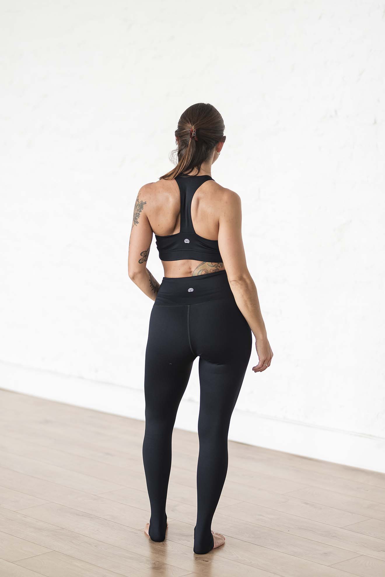Legging diseñada específicamente para actividades de movimiento. Su cintura alta está pensada para que te acompañe en todas las posturas. Trae botamanga extra larga para usarla como pantalón: podés bajarla para tapar tus tobillos y talones, o abuchonada por encima de tu pie. Confeccionada con costuras planas, suaves por dentro y por fuera.