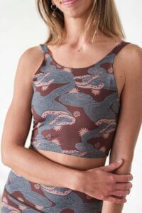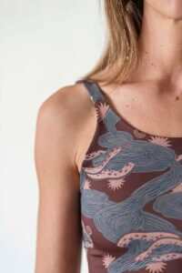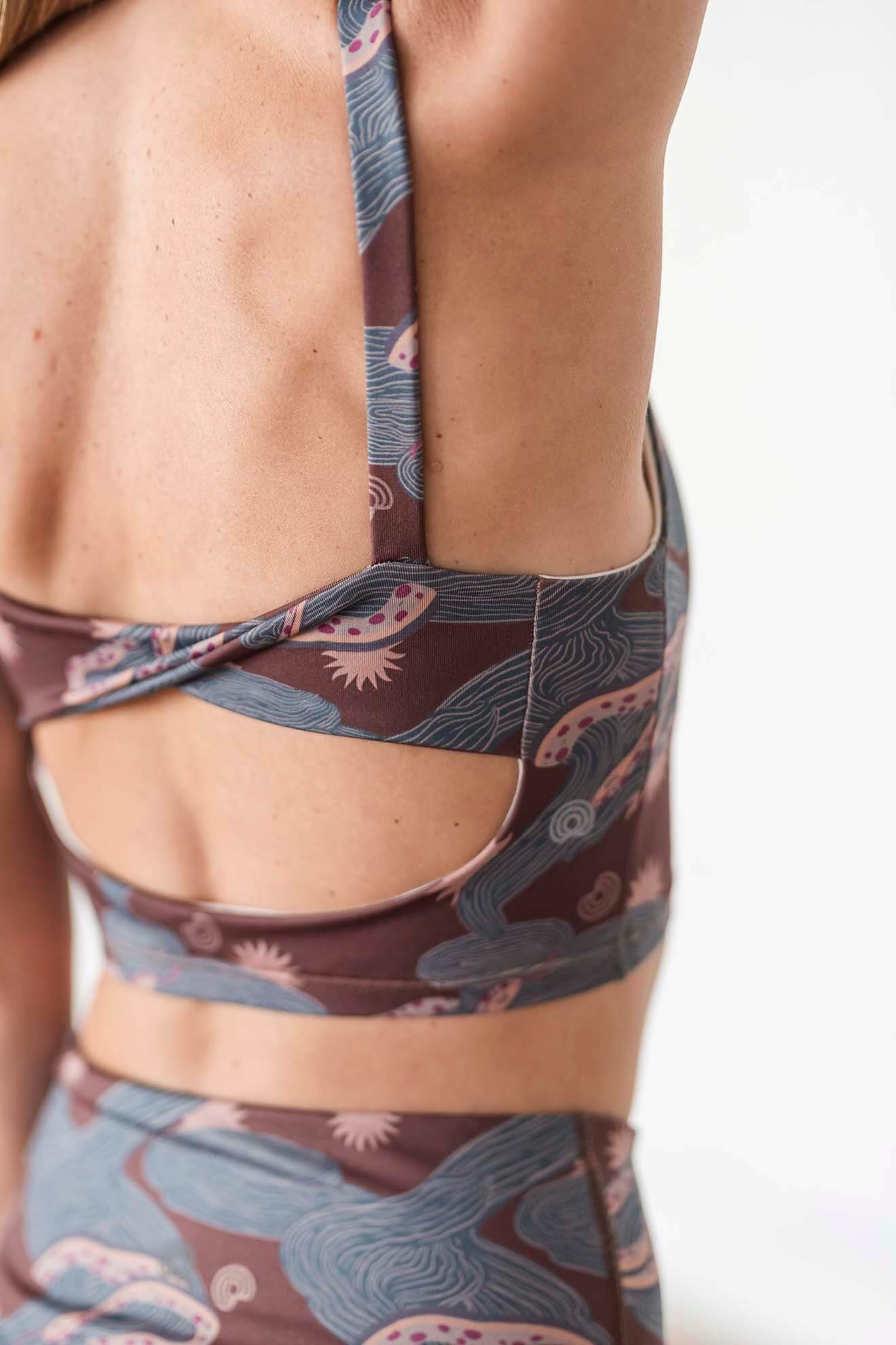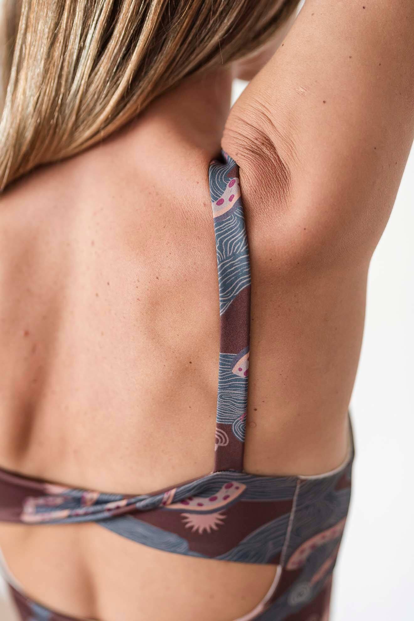 Top con un diseño súper delicado, cómodo, y con detalles técnicos específicos para tu práctica de movimiento. De frente es simple y con breteles finos como una musculosa. Su espalda trae una abertura con un detalle torsado muy hermoso, diseñado para que al moverte te sientas libre y fresca.