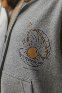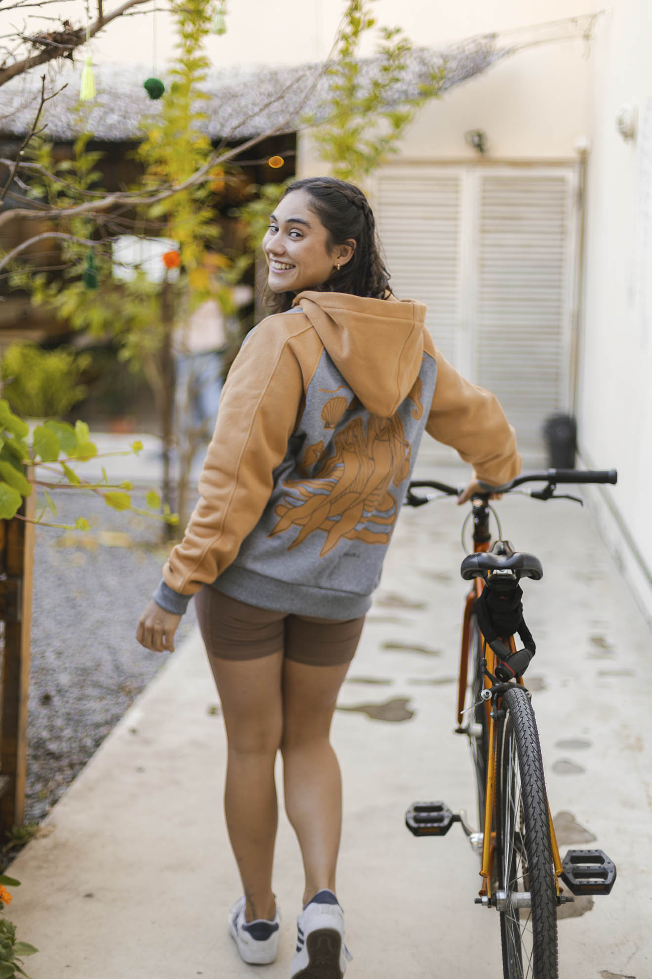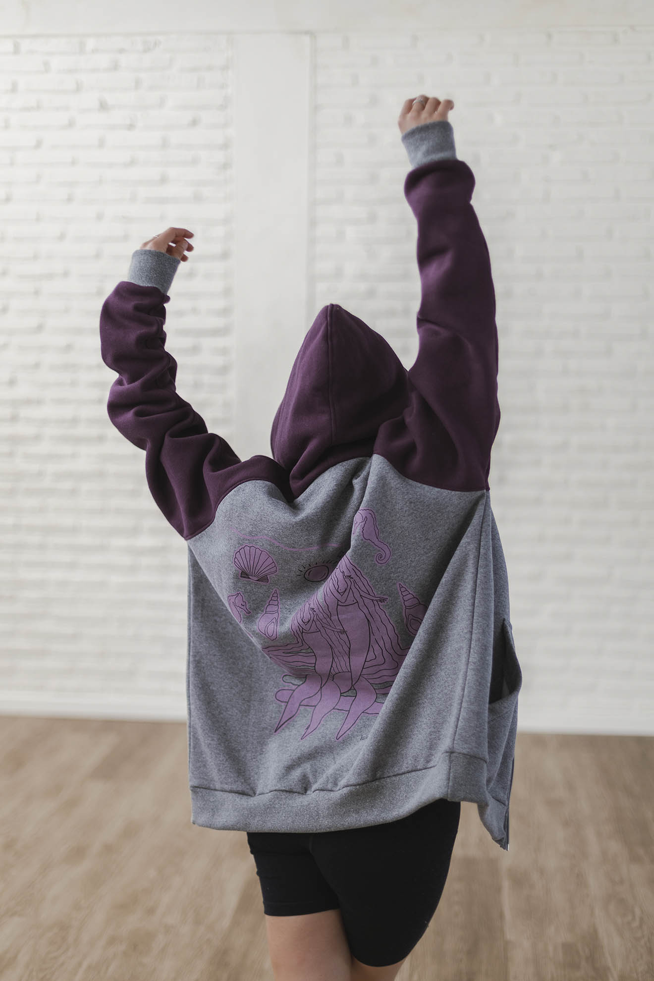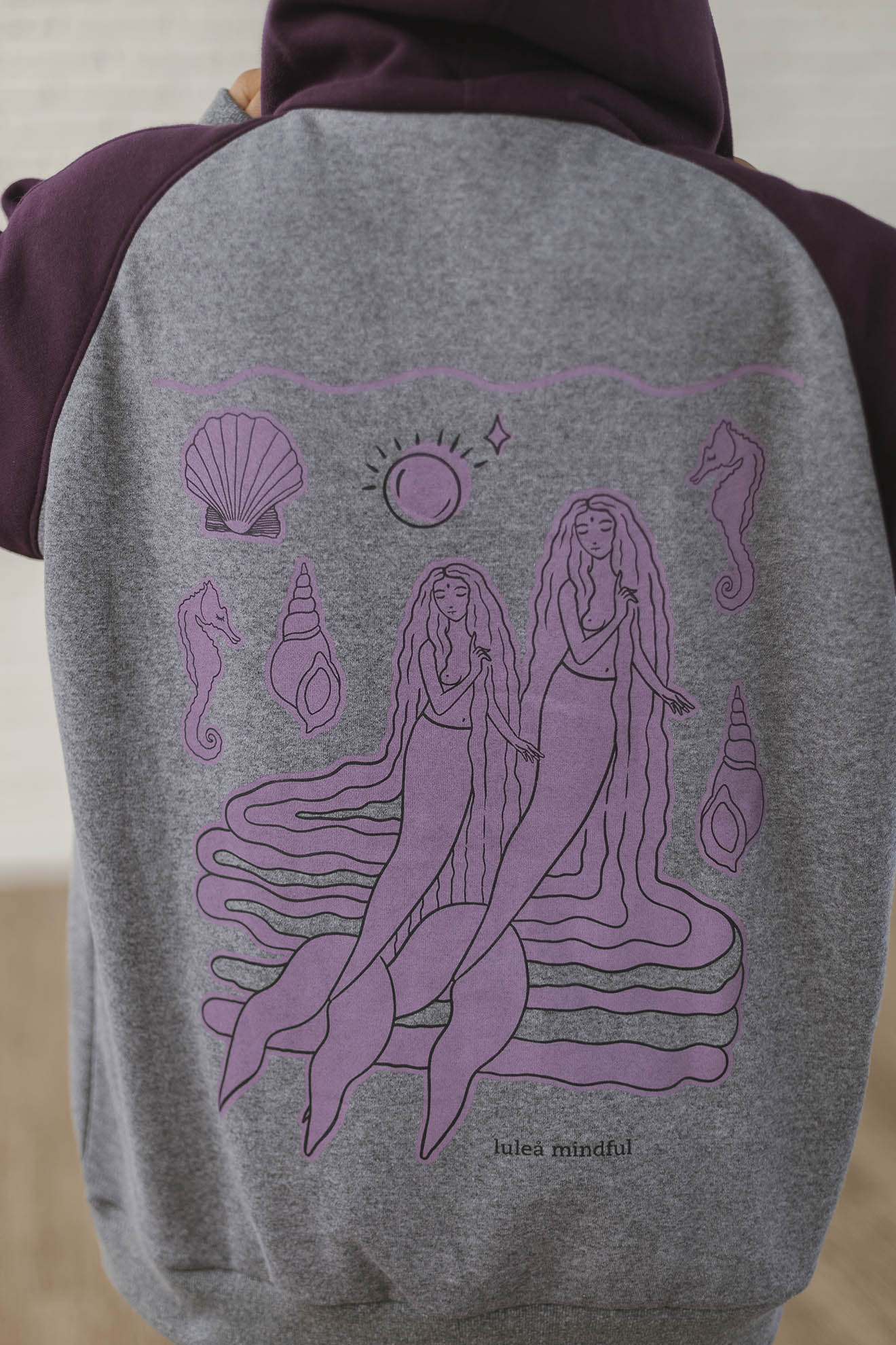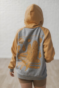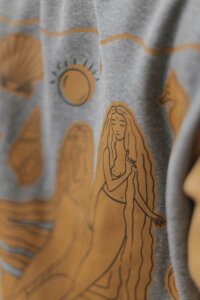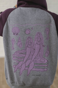 Está confeccionada íntegramente en algodón con frisa, una tela súper abrigada y confortable. Trae la estampa Sirenas en la espalda y escudo al frente realizadas en serigrafía artesanal con tintas al agua.